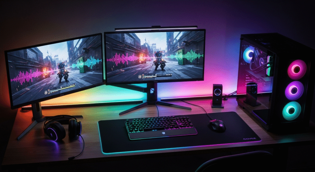 - Complemento: Coloca un par de Govee Light Bars a los lados del escritorio.